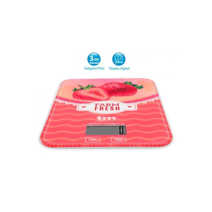 Capacidad: 5 kgPrecisión: 1gPantalla: LCD 46X24 mmDesconexión automática: siIndicador de batería baja: siIndicador de sobrepeso: siBascula ultra fina: 17 mmCristal templado: 3 mmPila 1x CR2032